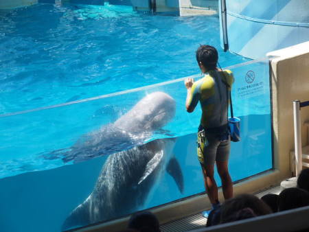水槽の中と外で気持ちが通じるのかな