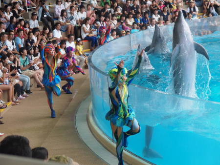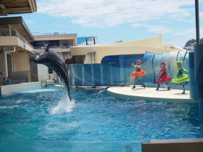 新江ノ島水族館でイルカのショ―を見る (2014年8月3日撮影)