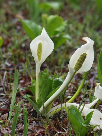 ミズバショウとオオバナノエンレイソウ (2015年4月13日撮影)
