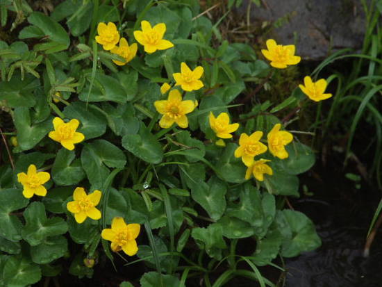 エゾリュウキンカ、エンコウソウなど近縁の植物がいくつかあるが