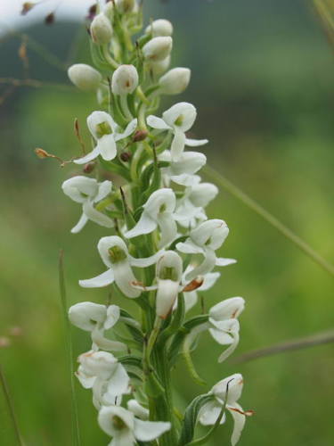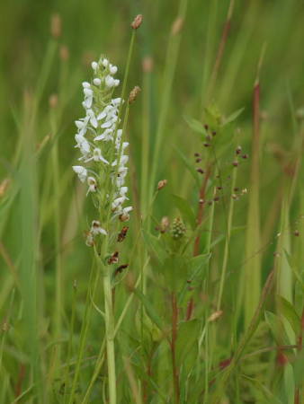 湿原に立ち上がって白い花を咲かせる野生のラン