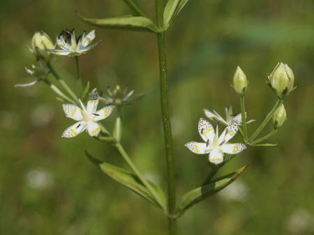5枚の花弁の先の方に黒い小さな星をちりばめたような模様がある